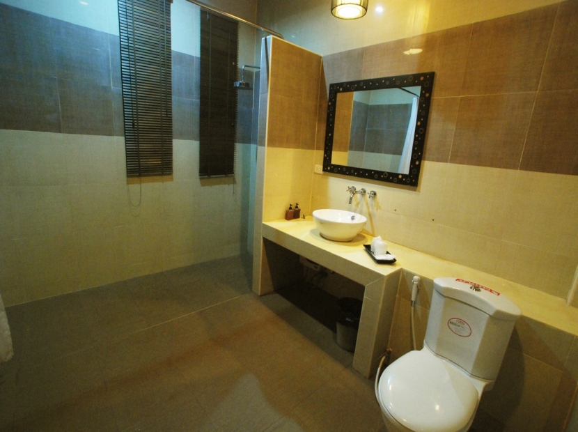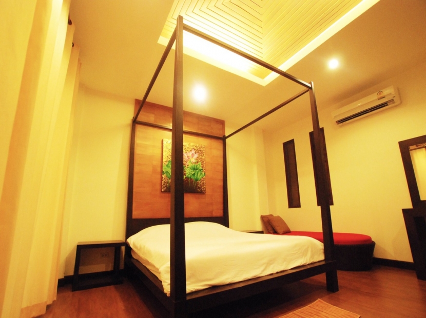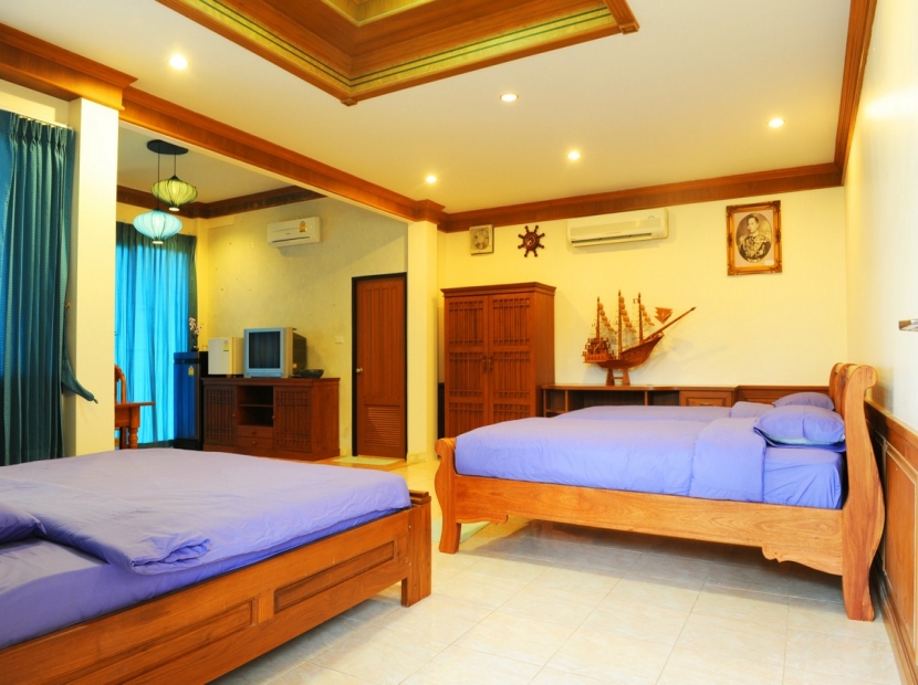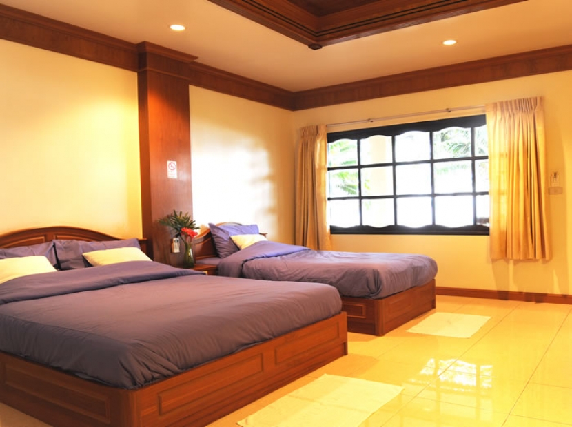 บ้านทรายทอง บีช รีสอร์ท มีห้องพักทั้งหมด 30 ห้อง และทุกห้องได้รับการออกแบบให้มองเห็นวิวทะเลเบื้องหน้าได้ชัดเจน ลักษณะการตกแต่งเป็นแบบ Tropical Contemporary และโอบล้อมด้วยธรรมชาติรอบตัว มีทั้งลักษณะเป็นอาคารชั้นเดียวและ 2 ชั้นเหมาะสำหรับครอบครัว, กลุ่มเพื่อนและกรุ๊ปสัมมนา อีกทั้งยังมีในโซนสระว่ายน้ำซึ่งมีลักษณะเป็นอาคาร 2 ชั้นซึ่งเห็นวิวสระว่ายน้ำตัดเส้นขอบฟ้าและทะเลไกลสุดสายตา และในส่วนของบ้านพักส่วนตัว (วิลล่า) ภายในจะมี 1 ห้องนอน และห้องน้ำภายในซึ่งกว้างขวาง รวมทั้งอ่างอาบน้ำภายนอก (Outdoor Bathtub) ซึ่งเหมาะสำหรับคู่รักที่ต้องการพื้นที่ความเป็นส่วนตัวริมทะเลอีกด้วย